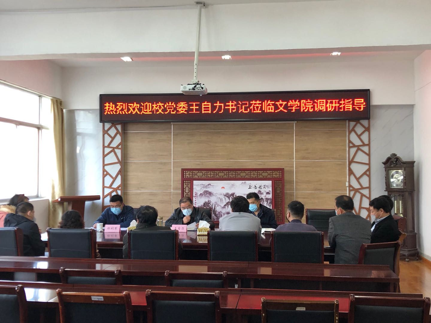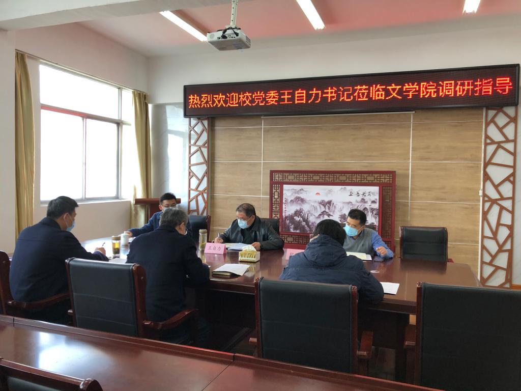 3月18日下午,校党委王自力书记在组织部部长纪延光、党委办公室主任郑利军陪同下,专程到文学院调研党的建设与班子运行状态。院党政负责同志吴明忠、田德勇、唐浩和教职工代表参加了调研座谈。