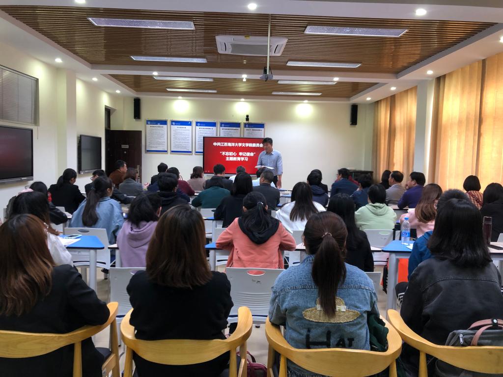 10月23日下午,文学院开展“不忘初心、牢记使命”主题教育学习,院党委副书记田德勇主持,文学院全体师生党员参与了本次主题教育学习。