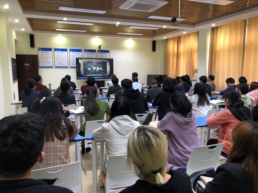 田德勇副书记提出要严格按照《文学院主题教育实施方案》开展“不忘初心、牢记使命”主题教育学习,确保主题教育活动扎实有序开展。读原著、学原文、悟原理是了解和学习党知识的重要方法,院长吴明忠、新闻系系主任班允凤和王志德教授等教工党员朗读了《习近平关于“不忘初心、牢记使命”论述摘编》相关章节。随后,全体师生党员们集体观看了《孤岛32年》《诺言》《忠诚》3部专题影片。