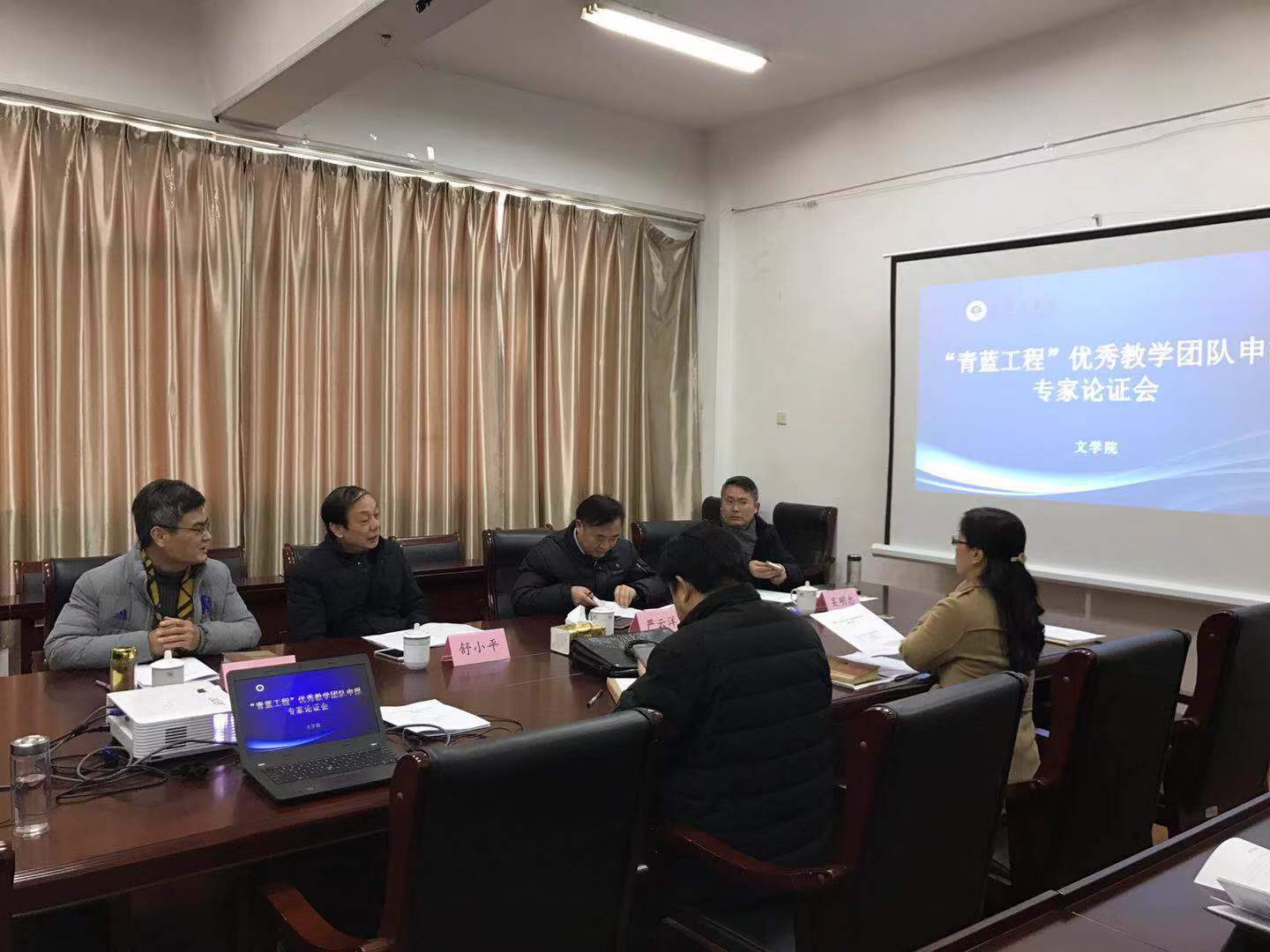 2019年1月2日,文学院举办“青蓝工程”优秀教学团队申报专家论证会。本次论证会邀请到淮海工学院副校长舒小平、淮海工学院副校长严云洋、教务处处长李纪明、教学质量管理处处长吴明忠组成专家组,对我院教师2019年度拟申报的“青蓝工程”优秀教学团队项目、优秀青年骨干教师项目进行论证。团队带头人王恩建老师对“语言学”教学团队申报情况作了总体说明,唐浩老师对优秀青年骨干教师申报情况作了汇报,安俊丽院长主持会议,文学院的青年教师也参加了本次会议。