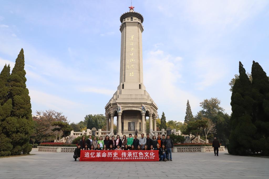 以临沂为中心的沂蒙山区,有着光荣的革命传统。为纪念在抗日战争和解放战争中牺牲的华东地区革命烈士,11月3日,文学院教工党员和第56期党校学员在院党委书记马恒民的带领下,参观了华东革命烈士陵园、沂蒙革命纪念馆、中共中央山东分局旧址等地,开展了“追忆革命历史,传承红色文化”主题党日活动,共同追寻红色足迹,坚定理想信念。