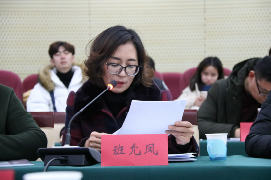 (连云港市新闻传播学会会长、文学院新闻系主任班允凤发言)