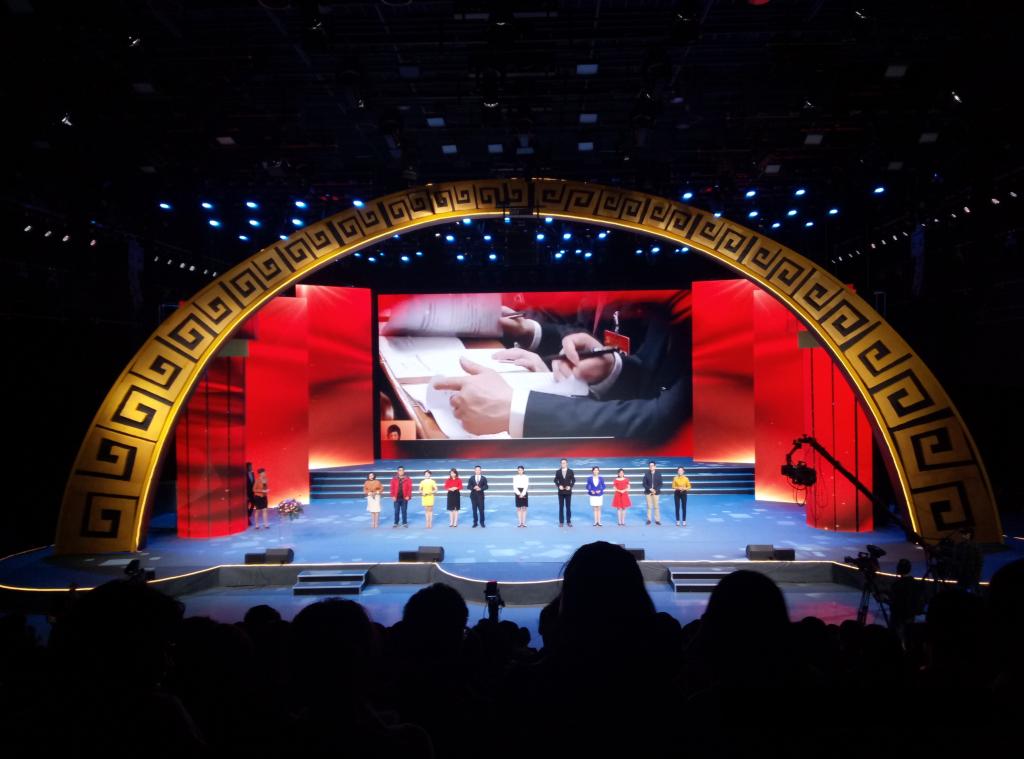 2017年11月2日下午,为庆祝第十八个记者节,中共连云港市委宣传部与连云港市新闻工作者协会在市广播影视文化产业城演播大厅举办“初心不改再前进--好记者讲好故事”报告会。文学院组织两百名师生参加了活动。