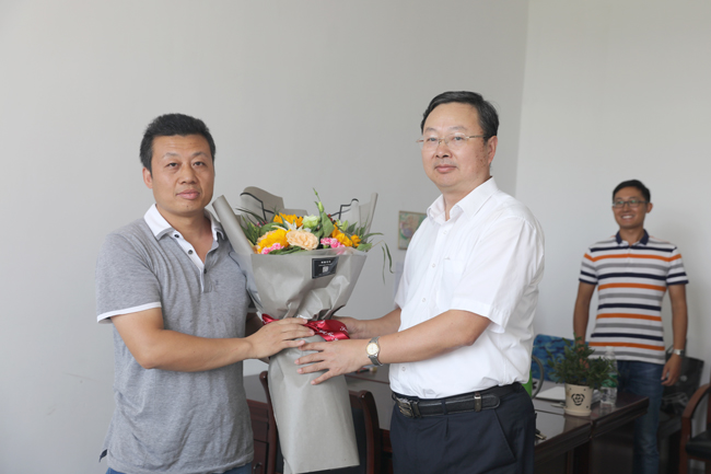 9月7日下午,在全国第33个教师节来临之际,新任校长宁晓明来到文学院,亲切看望慰问一线教师代表张兴龙副教授,给他送来鲜花和慰问金。
