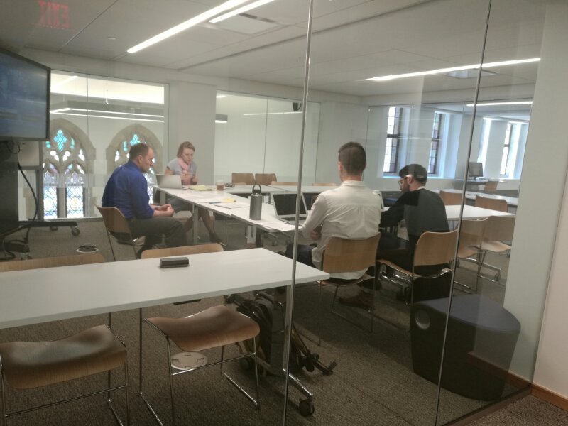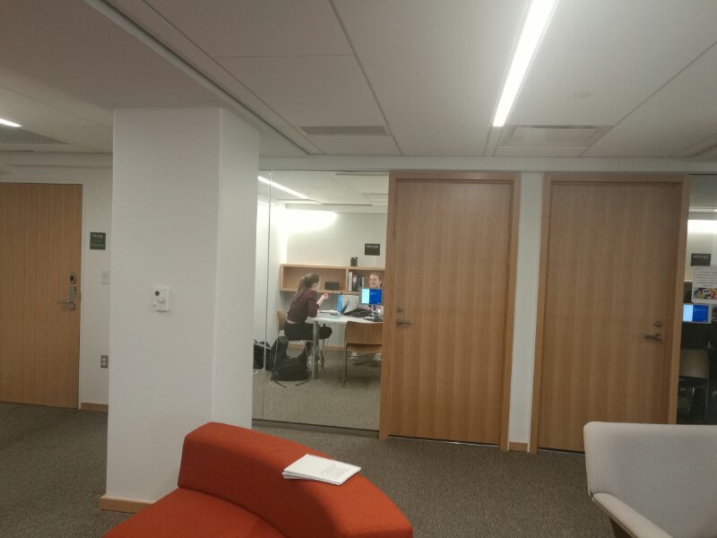 据介绍,整个耶鲁大学写作教学指导中心占地不到1000平方米,用了学校著名的斯德林图书馆东侧一层的部分空间,环境相当安静和舒适。在里面教学的师生大约在50人左右。整个中心分为三大区域: