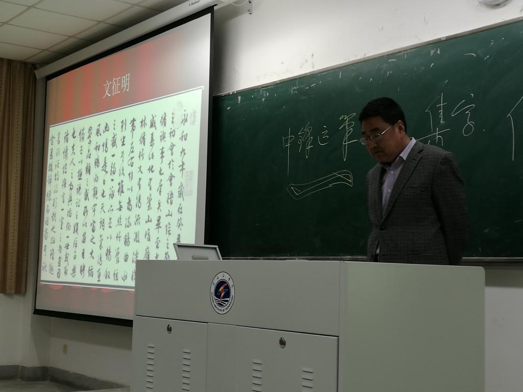 近日,一场名为“书法美的价值及其表现空间”的讲座在文学院圆满举行。讲座由连云港开放大学副校长张廷亮研究员主讲,文学院汉语言文学专业、新闻学专业、广告学专业2015级二百多名同学听取了讲座。讲座既具学术性又具艺术鉴赏性,现场气氛热烈,讲座取得了良好效果。