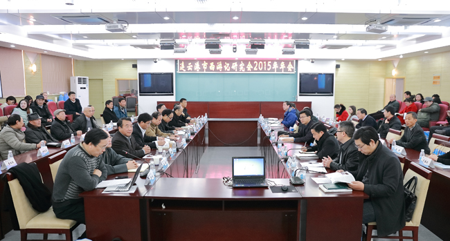 本次年会特邀全国西游记研究资深专家蔡铁鹰、连云港市西游记研究资深专家李洪甫作学术报告,介绍了全国西游记研究动态和个人最新研究成果。在学术研讨环节,江苏省西游记文化研究会秘书长、我校学术期刊社社会科学编辑部副主编徐习军,江苏酷歌数码集团董事长、市西游记研究会首席顾问赵敏哲,江苏省海洋文化产业研究院院长、我校艺术学院张琦,文学院副教授郭淑娟,我校中亚留学生代表、俄罗斯喀山大学东方系毕业生热内娅,以“西游记与中外文化传播”为主题,结合西游文化产业发展,分别发表主旨演讲。连云港市人大原副主任、市委宣传部原部长、西游记研究会总顾问吴加庆同志最后作总结讲话,希望研究会进一步深入开展西游记文本研究、产业研究和域外传播研究,主动为市委市政府谋划“十三五”文化产业发展建言献策。