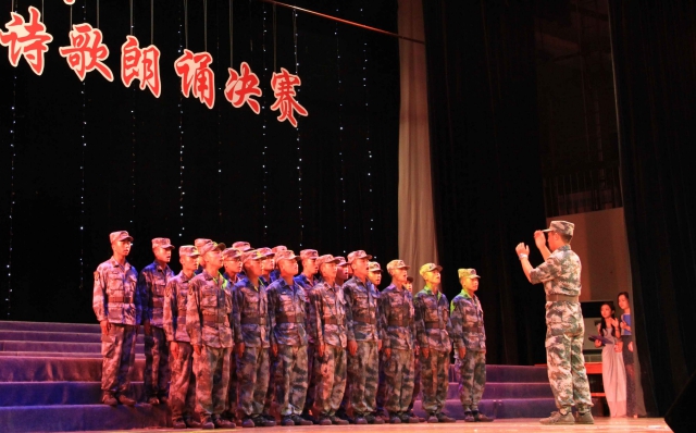 比赛过程中,国家一级演员、飞天奖获得者、市朗诵协会主席姜华,江苏省朗诵协会副会长、市朗诵艺术家协会主席汪帆,连云港市广电集团影视频道副总监、市曲艺杂技家协会主席李卫东,市电视台导演、国家一级播音员张连连亲自登台进行示范表演。承担新生军训的教官为广大师生带来了热情豪迈的军旅歌曲《强军战歌》和《共筑中国梦》,市咏春拳少年班的孩子们应邀表演了精彩节目《咏春拳》。