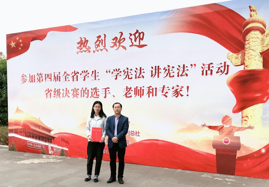 省级决赛可谓高手如林,比赛异常激烈,精彩纷呈,扣人心弦。最终,王嘉惠同学凭借沉着稳定的临场发挥荣获“学宪法讲宪法”知识竞赛二等奖,其指导老师吴建国副教授荣获优秀指导教师奖。