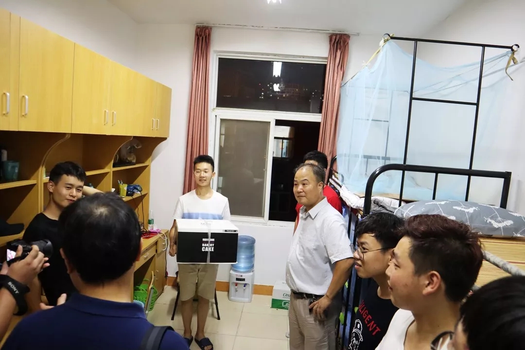 彼时,周云波和他的舍友们正在阅读学生手册,宿舍里静悄悄的,院领导走进宿舍并对周云波说:“今天是你的生日!”随即朱书记将一个大蛋糕端到周云波面前,接过蛋糕的周云波有些激动,“谢谢老师,谢谢老师!