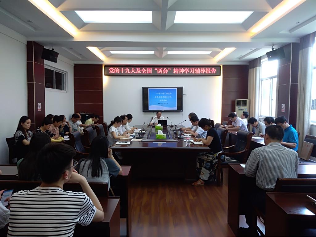6月13日下午,法律与公共管理学院在文渊楼216会议室开展2018年教职工理论学习,邀请学校党的十九大精神与全国两会精神宣讲团成员、商学院院长宣昌勇教授做了题为“一带一路”倡议与我国新时代的全方位开放战略的辅导报告。报告会由院党总支书记朱国良主持,学院全体教职工和全体学生党员参加。