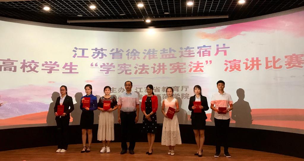 9月16日,江苏省徐淮盐连宿片区高校学生“学宪法讲宪法”演讲比赛在淮阴师范学院举行。此次比赛由江苏省教育厅主办,淮阴师范学院承办。我校法律与公共管理学院法学151班学生江芝龄同学代表我校参加了此次比赛。