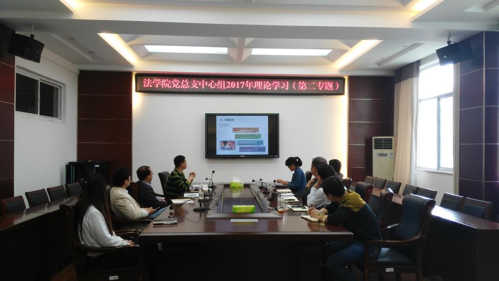 4月28日下午,法学院在文渊楼216会议室举行党总支中心组2017年第二专题理论学习,法学院全体院领导、支部书记参加,会议由法学院党总支书记朱国良主持。