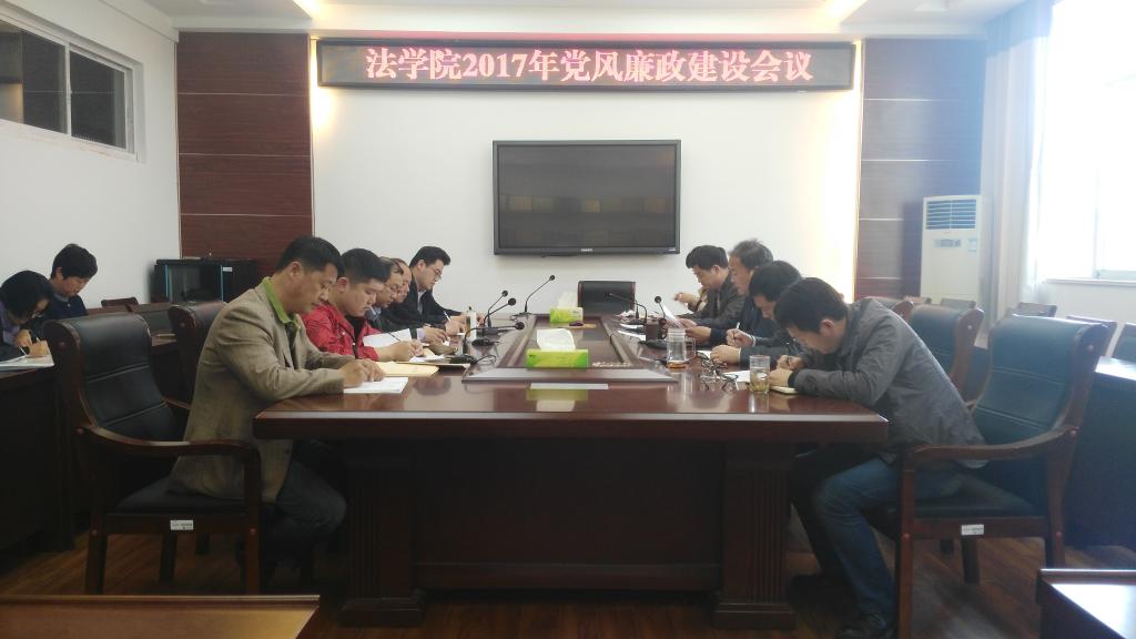 4月24日下午,法学院在文渊楼216会议室召开2017年党风廉政建设专题会议,学习传达中央和地方各级党风廉政建设会议精神,部署2017年党风廉政建设工作。法学院全体院领导、支部书记、系正副主任、实验室主任和全体办公室人员参加,会议由法学院党总支书记朱国良主持。
