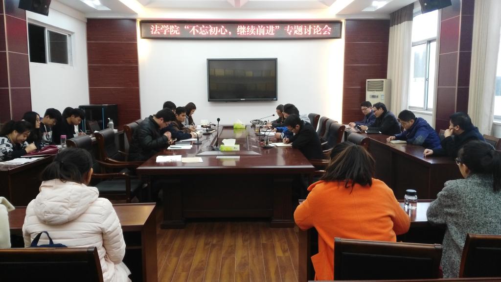 11月9日下午,法学院在文渊楼216会议室召开“不忘初心,继续前进”专题讨论会,学院全体党员参加,会议由法学院党总支副书记、副院长黄金虎主持。