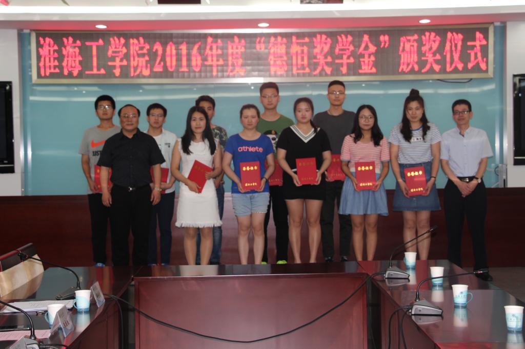 颁奖仪式在热烈的掌声中拉开帷幕。张萍副处长宣读了《关于颁发淮海工学院2016年度“德恒奖学金”的决定》,魏冕、孙赞、孙浩轩、孙龙凯、金琼、马聪、戴梦婷、田思雅、冯奇、孙兴民等10名同学获得了2016年度“德恒奖学金”,每名同学奖金5000元。随后,王洪法副校长和朱德堂校友为获奖同学颁发了荣誉证书。
