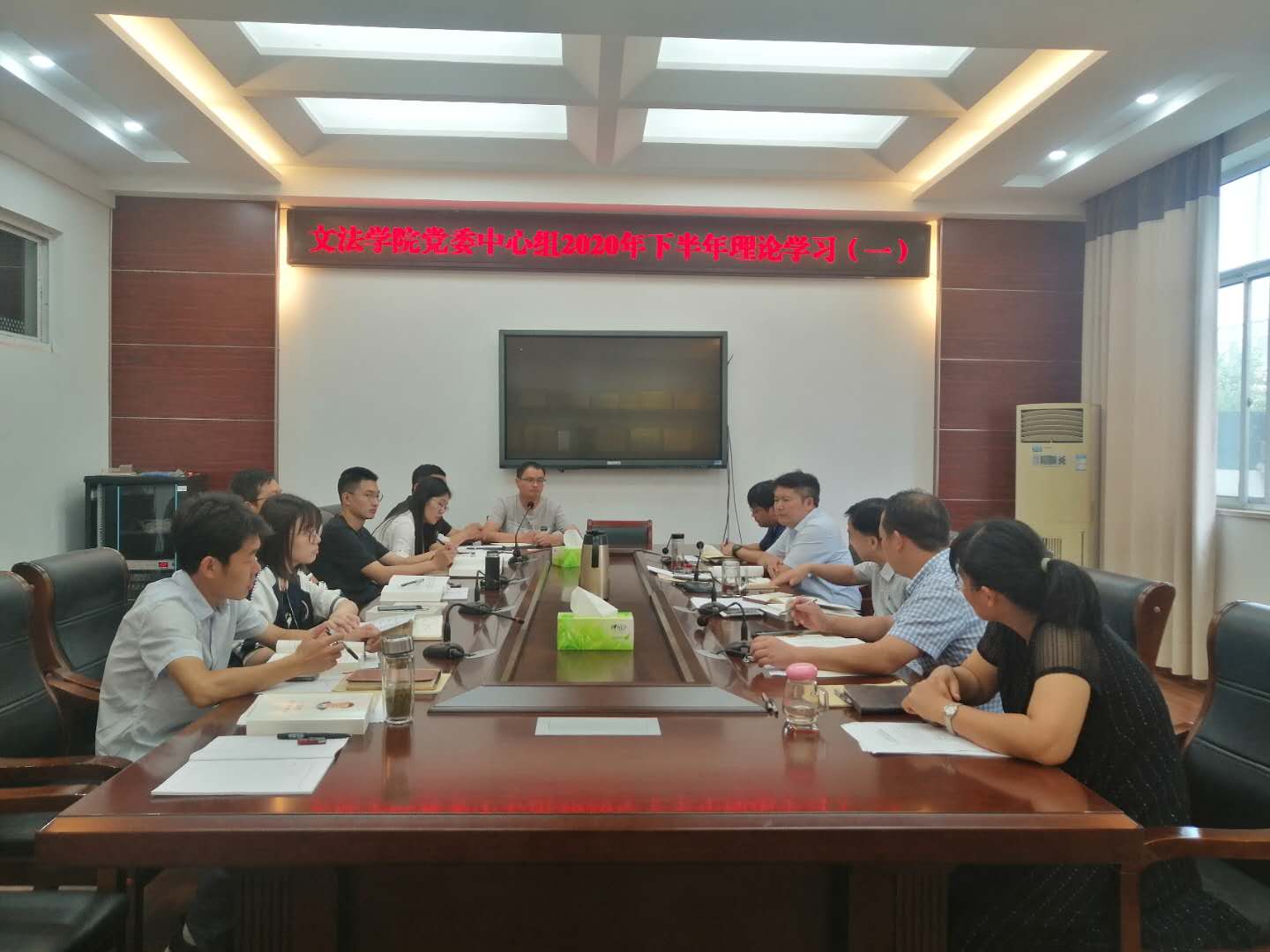 9月22日上午,文法学院在文渊楼216会议室召开党委中心组理论学习会,专题学习《习近平谈治国理政》第三卷,全体院领导、支部书记和党政办公室主任参加。