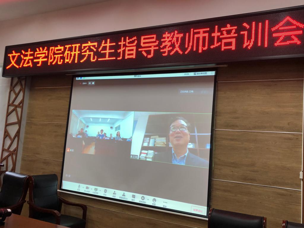 集中培训之后,邀请国家级中文教指委委员、苏州大学原文学院院长、博士生导师王尧教授和中国矿业大学原文学与法政学院院长、博士生导师段鑫星教授分别为中国语言文学学术型硕士研究生导师、公共管理MPA专业硕士研究生导师就如何做好研究生培养工作做了专家讲座。