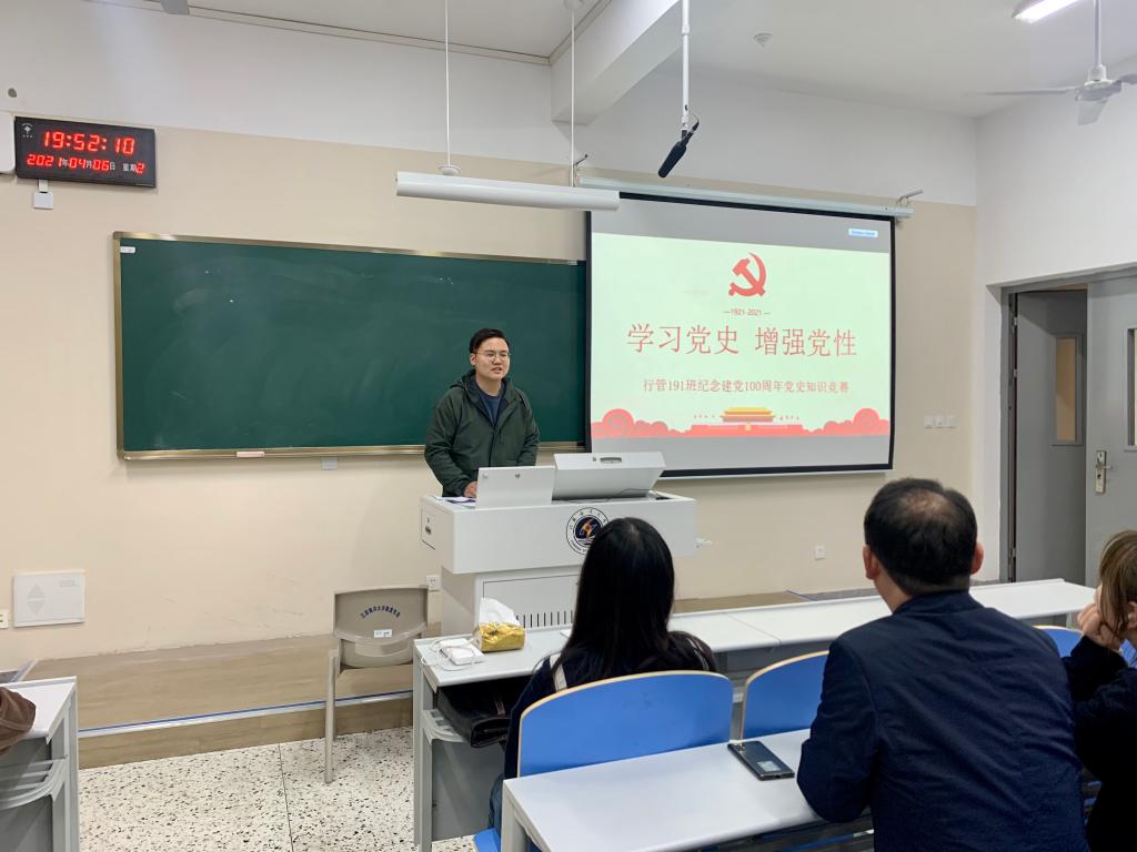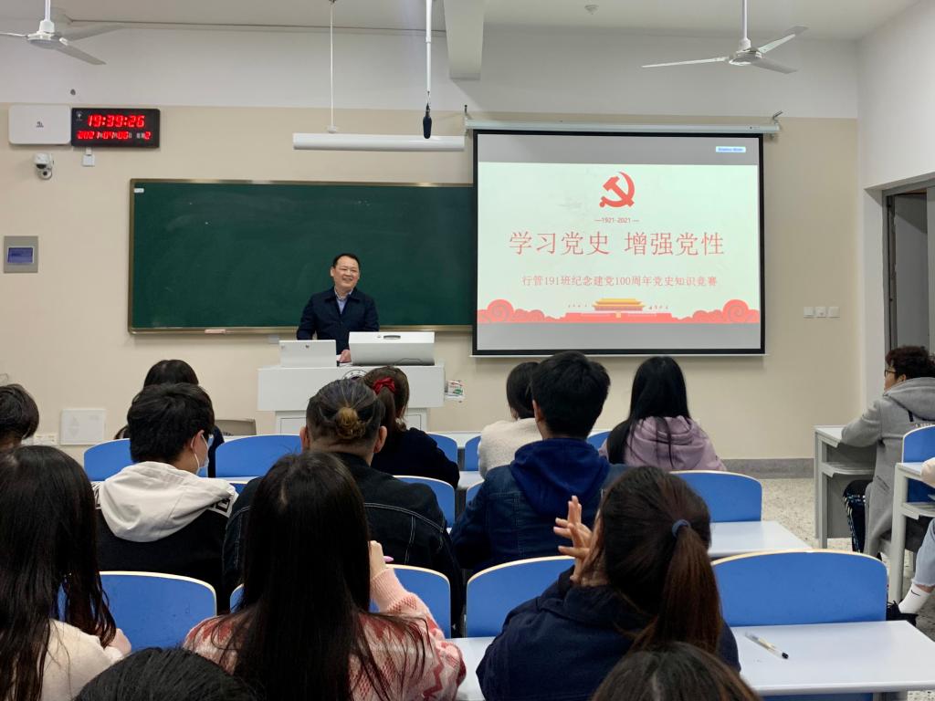 4月6日晚7时30分,文法学院行管191班在苍梧校区文思楼102教室举行了“学党史 强信念”庆祝建党100周年党史知识竞赛活动。