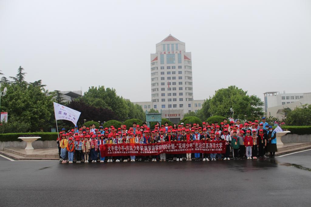 “细雨芳菲五月天,有爱有暖在校园。去年见你今又见,一片冰心在心间”。5月15日至16日,我校文法学院志愿服务指导中心于携手邳州市唯爱公益组织,带领110名乡村小学生开展筑梦游学走进江苏海洋大学。这是该组织第三次带领游学团走进美丽的江苏海洋大学,文法学院党委副书记王国银和辅导员李想对冒雨来参观江苏海洋大学的孩子们表示欢迎。王书记表示,有这种不怕困难的精神就没有战胜不了的困难,他希望乡村的孩子们经常来大学里感受大学校园的书香和人文文化,激发自己的学习动力,从小为自己的大学梦而努力。接着,王书记与唯爱公益组织耿万瑞会长一起为江苏海洋大学——筑梦游学10100计划乡村“花样少年”社会实践基地揭牌。