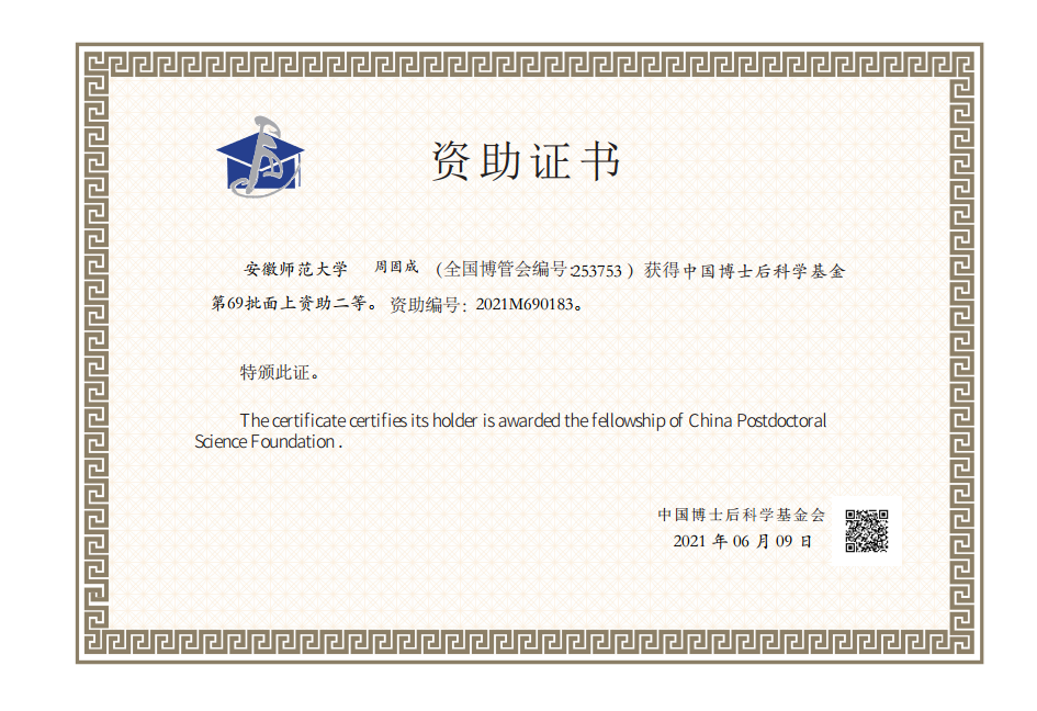 周固成博士2020年进入安徽师范大学博士后流动站,合作导师是潘务正教授。其获批面上资助项目《西游戏史料辑录与考论》是西游戏研究极其重要的工作,是弘扬国粹、表现和传承中华优秀传统文化的重要载体。西游戏作为我国四大名著《西游记》坚韧精神的戏曲形式,文献史料丰富多元,推进了国内西游戏曲领域的研究,有效支持了学校的学科建设。