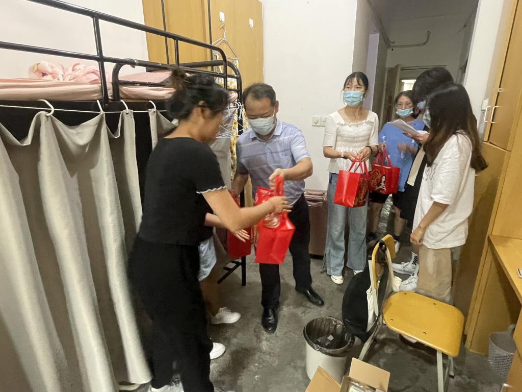 8月9日下午,文法学院党委副书记王国银、辅导员蒋莹莹、李想一同前往A2、B3、B4、B8宿舍楼看望暑期留校考研学生,并为他们送去慰问品。