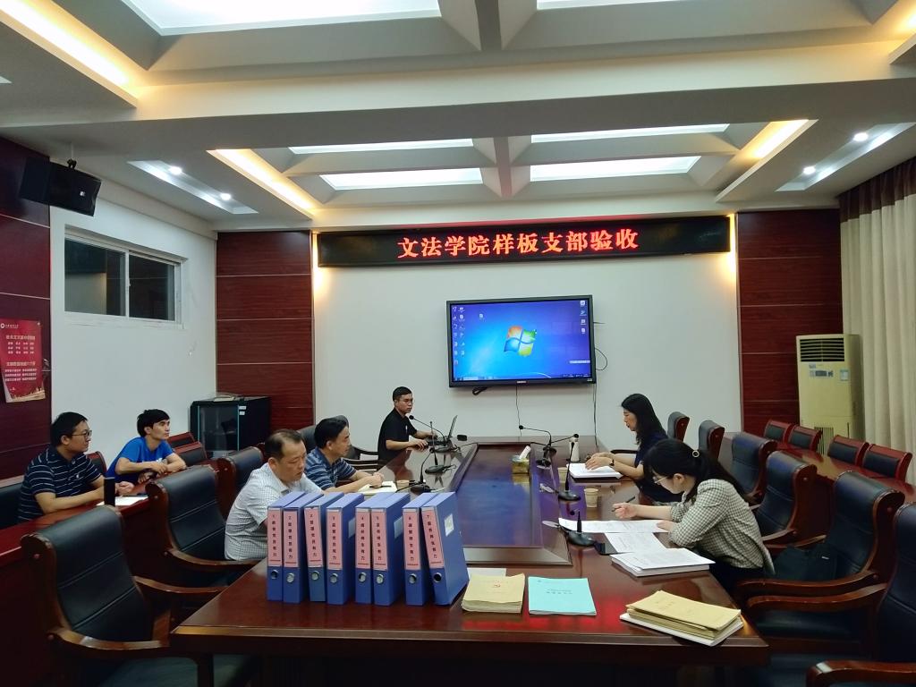 为全面贯彻落实新时代高校党建总要求,有效推进我校党建“双创”工作,通过以“考”促建,8月31日下午,机关党委纪检委员王秀娟、党委组织部党建科科长王静到文法学院对党建“双创”样板党支部法学系学生党支部和中文系党支部进行样板党支部验收。党委书记吴价宝主持会议,副书记王国银、中文系主任袁丁和学工办负责人蒋莹莹参加会议。
