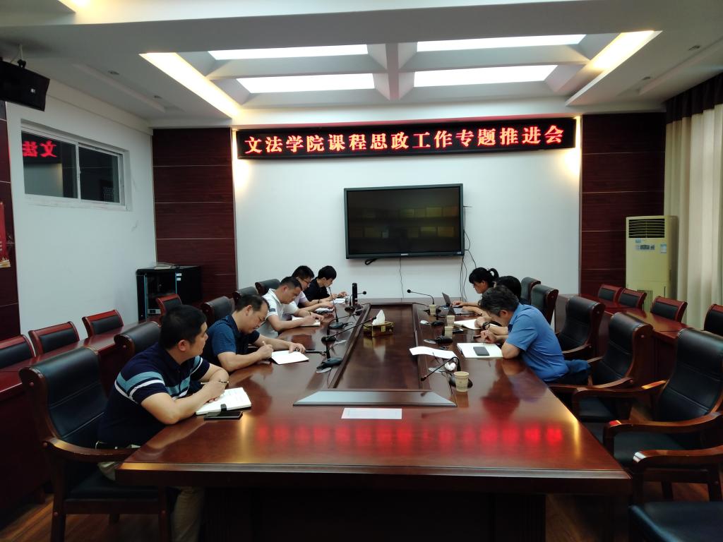 9月15日下午,文法学院在文渊楼216会议室召开课程思政建设工作专题推进会,党委书记吴价宝主持会议,院领导、各系支部书记参加会议。