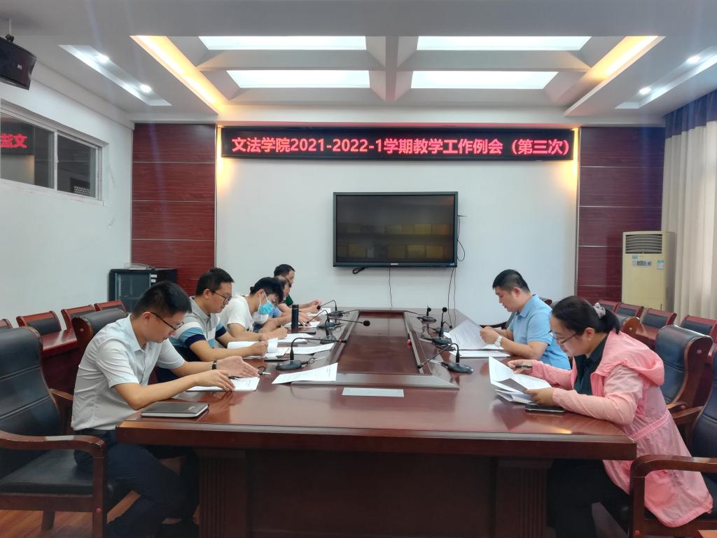 10月6日下午,文法学院本学期第三次教学工作例会在文渊楼216会议室召开。副院长颜金、各系正副主任、教工党支部书记和教学办负责人参会。会议由副院长颜金主持。