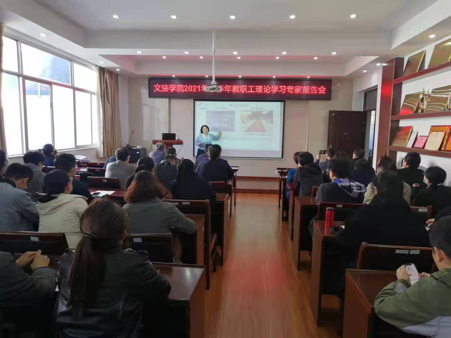 10月27日下午,文法学院在文渊楼314举办学习贯彻习近平总书记“七一”重要讲话精神专题宣讲报告会。邀请校党史教育宣讲团成员、马克思主义学院副教授朱凌云同志作报告。全院教职工参加会议,党委书记吴价宝主持会议。