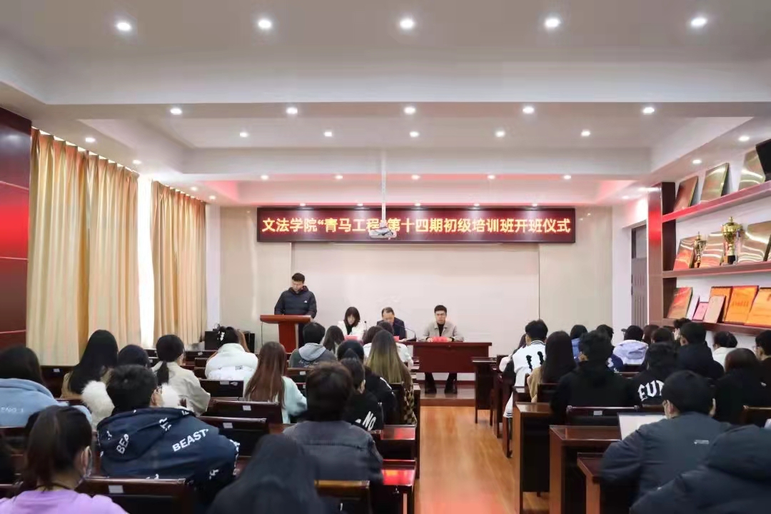 为加强青年学生政治引领,锤炼青年学生政治品格,不断提升理论水平和实践能力,11月14日上午,文法学院在文渊楼314举行了“青马工程”第十四期初级培训班开班仪式。党委副书记王国银、团委负责人李想以及第十三期培训班学员代表王心彤出席了开班仪式,学院49名学员参加了培训。