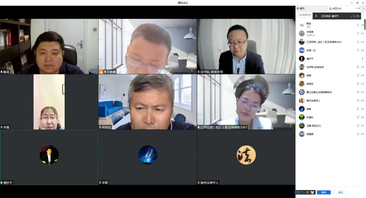 论证会邀请了来自西安交通大学法学院教授李霞,西北大学法学院教授、博导潘怀平,西安交通大学法学院副教授、博导王鹏,兰州理工大学生态环境法副所长、硕导欧俊,连云港市司法局副局长周 毓,连云港市律协副会长、一级律师郭中方,连云港市人大代表、市律协副会长、一级律师曹立志7名校外专家、学者和行业专家出席。