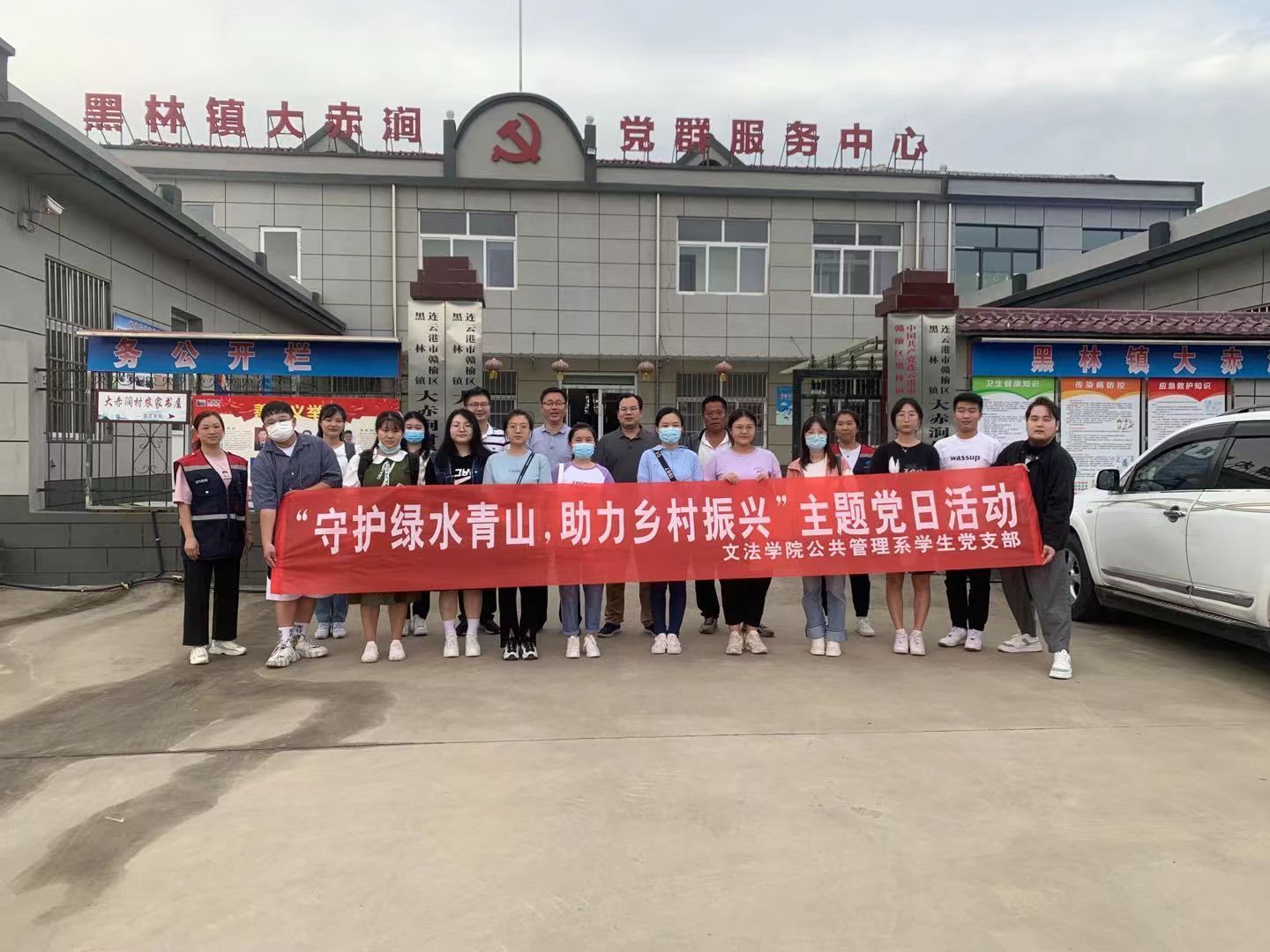 9月9日下午,文法学院公共管理系学生党支部书记、研究生党支部书记和公共管理系教工党支部部分教师及学生党员代表一行18人前往连云港市赣榆区黑林镇大赤涧村,开展“守护绿水青山,助力乡村振兴”主题党日活动。文法学院公共管理系党支部书记、江苏省委驻赣榆区乡村振兴工作队队员、大赤涧村第一书记杨殿闯,大赤涧村党支部书记冯强和村干部等人热情接待我院师生,一同实地走访调研,召开座谈会。