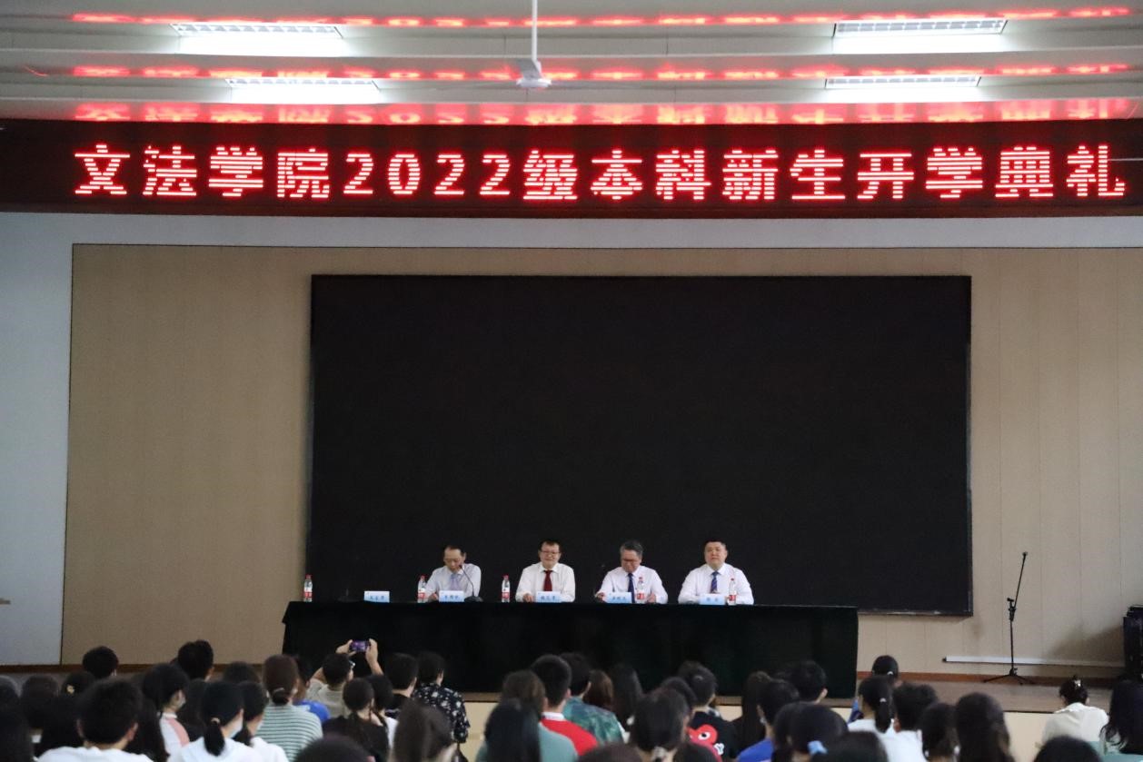 江海扬帆,梦想启程。9月12日下午2时,文法学院2022级本科新生开学典礼于通灌校区前程餐厅举行,文法学院党委书记魏范青、院长吴明忠、党委副书记王国银、副院长颜金、各系主任以及新生班主任、全体辅导员齐聚一堂,出席本次典礼。典礼由王国银副书记主持,全体2022级本科新生参加。