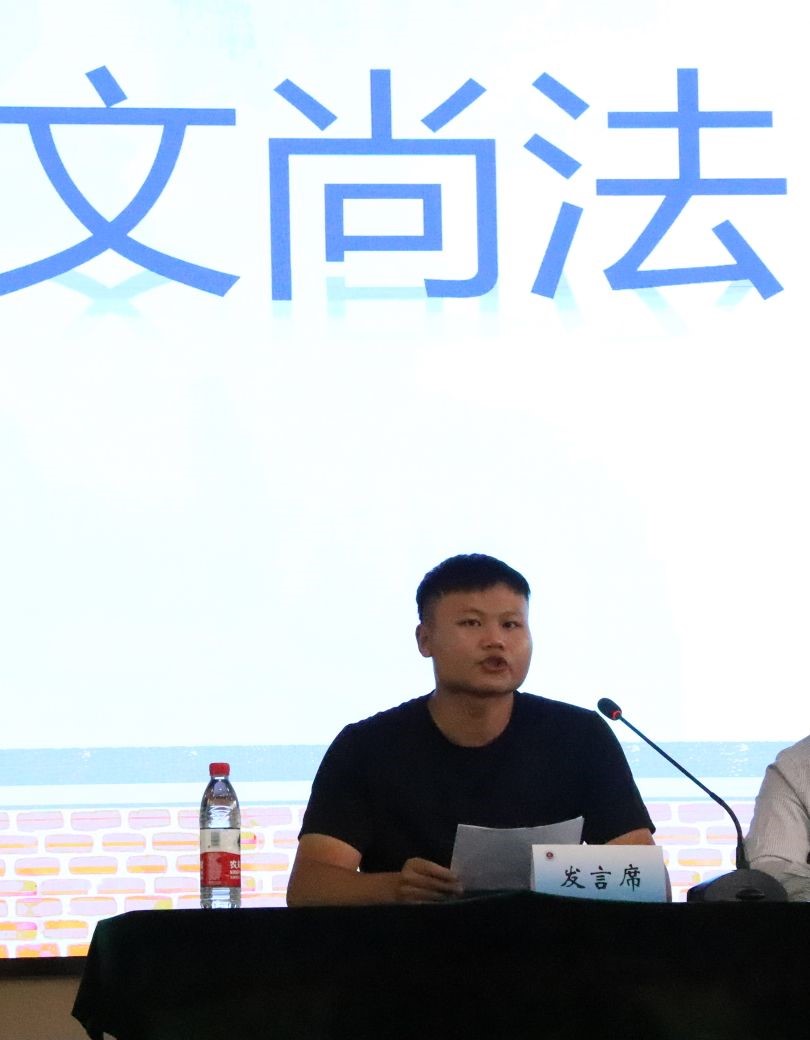 随后由文法学院团委副书记兼大学生成长成才服务中心主任、文法学院辩论队负责人、中文1222班助理班主任季玮同学代表老生进行发言。季玮同学作为我院的优秀学子,在发言中恳切希望新生同学们能在江海大继续书写自己的精彩人生。一个人的气质隐藏在他读过的书,走过的路,吾生也有涯,而知也无涯。这个时代需要更多潜心钻研的学生,希望你们都能做到在学习和研究中坚守纯粹。文法学院的未来,需要你我共同谱写!
