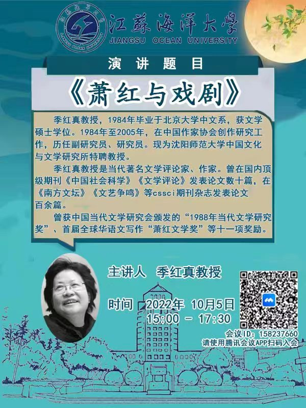 10月6日下午,文法学院特邀当代著名文学评论家、作家季红真教授在线作学术讲座“萧红与戏剧”。吴明忠院长主持讲座,中文系教师、全体研究生和部分本科生代表近百人在学院会议室或在线聆听。