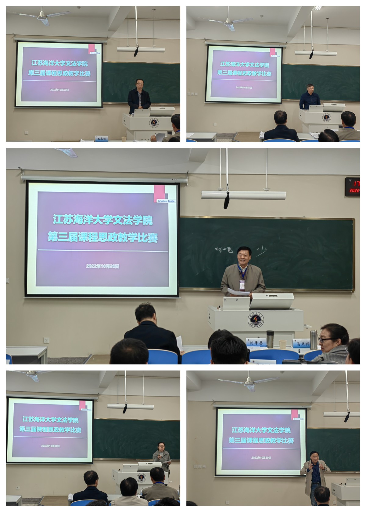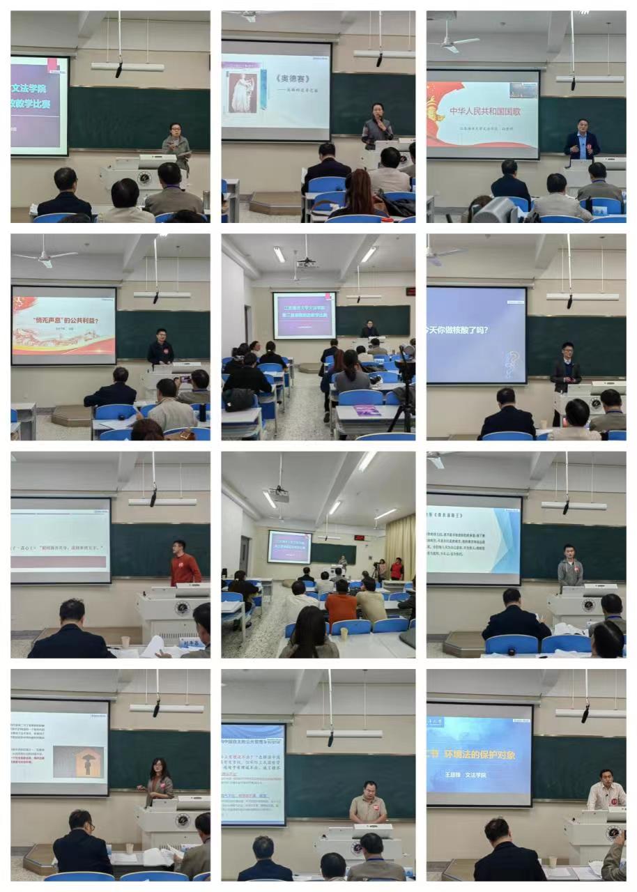 10月20日下午,为落实立德树人根本任务,高质量推进以“课程思政”为目标的课堂教学改革,使各类课程与思想政治理论课同向而行,学院在文华楼106教室举办第三届课程思政教学比赛暨线上线下观摩大会。本次比赛特邀校督导组刘平昌教授、海洋经济研究院吴价宝教授、药学院马卫兴教授、马克思主义学院王永强教授和教学质量管理处燕娇云副处长担任专家评委,来自中文系、法学系、公共管理系和新闻广告系的10位教师参加本次比赛。。本次比赛还利用了新媒体演播高清设备对比赛进行了全程直播,学院党委书记魏范青、副院长颜金和部分教师现场观摩,学院其他专任教师通过线上的方式对本次比赛进行观摩。