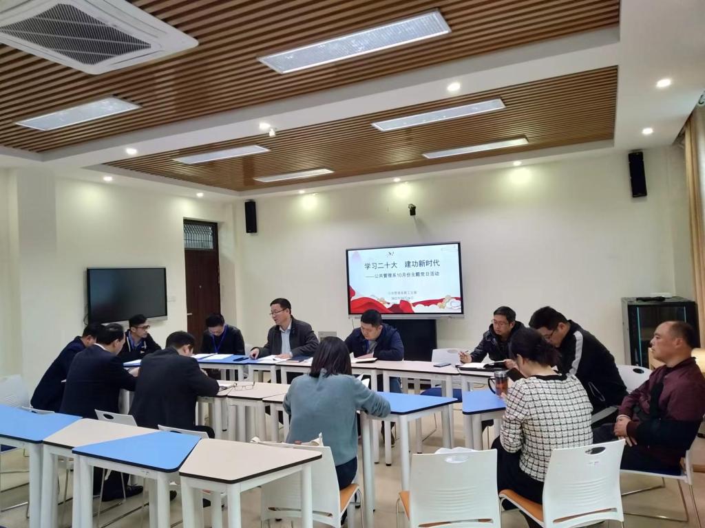 10月26日下午,文法学院公共管理系教工党支部在文渊楼134开展“学习二十大 建功新时代”主题党日活动,院党委书记魏范青、支部全体党员参加会议。