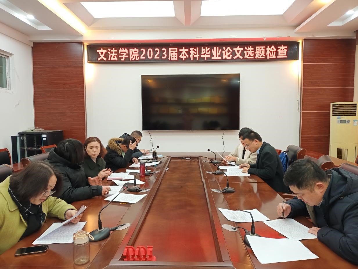 为贯彻立德树人根本任务,加强对毕业论文工作的过程管理,提升毕业论文质量,文法学院于2月16日下午在文渊楼216会议室组织开展“2023届本科毕业论文选题检查”活动,检查小组由学院分管领导、毕业论文工作小组成员和督导组成员组成。