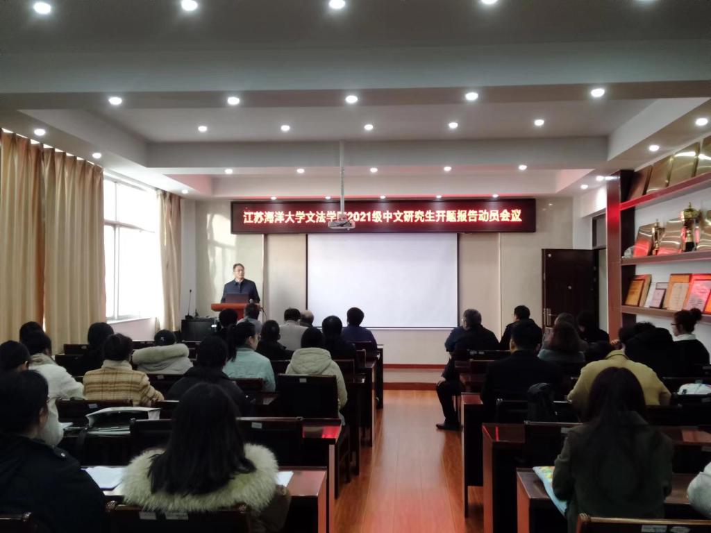 开题之前,学院就做好2021级中文研究生开题答辩进行动员。吴明忠院长主持会议,特邀江苏师范大学研究生院长、省研究生文学类教指委委员黄德志教授从论文选题的新颖性、研究框架合理性和开题报告的规范性三个方面提出要求,为整个开题工作提供了具体业务指导。