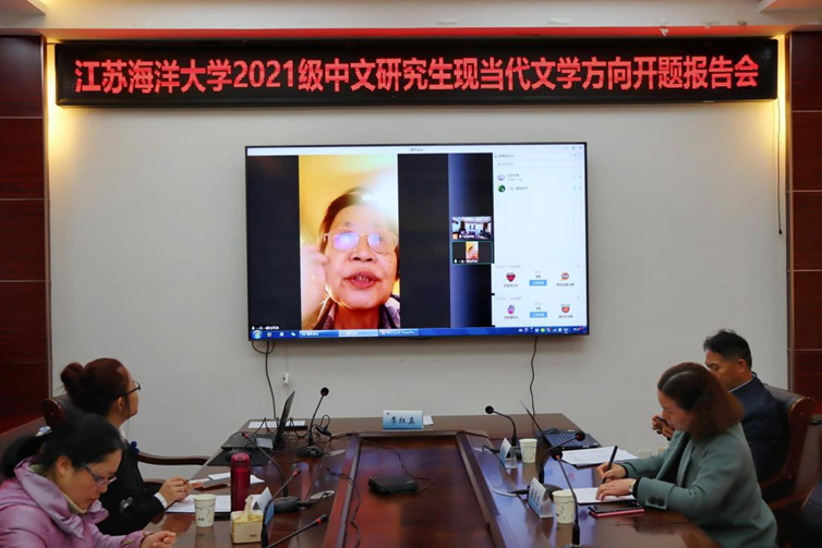 全体中文硕士生导师和2021级硕士研究生参与了此次开题报告会。各方向答辩小组分别邀请相关学科校外专家线上和线下同时参加。这次邀请的校外专家规格很高、阵容强大。他们包括江苏省研究生文学类教指委主任委员、南京大学杨金才教授,江苏师范大学研究生院院长、省研究生文学类教指委委员黄德志教授,沈阳师范大学季红真教授,扬州大学文学院副院长王逊教授,南京师范大学江守义教授,常熟理工学院王健教授,盐城师范学院王玉琴教授,江苏师范大学唐浩副教授和淮阴师范学院袁丁副教授。