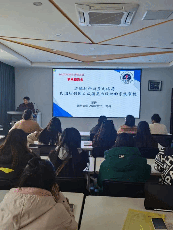 扬州大学王逊教授作题为“边原材料与多元格局:民国所刊国文成绩类出版物的系统审视”讲座。王逊教授结合自己的研究让同学们看到了一个古代文学学者如何去处理边缘的一手资料,如何从这些零碎的资料中发现问题,以及解决问题的学术视野和学术方法。