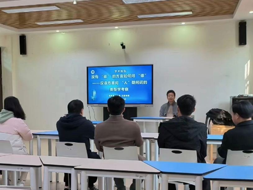 常熟理工学院王健教授讲座题目是“没有‘谁’的方言如何问‘谁’?——汉语问‘人’疑问代词的类型学研究”。王健教授从什么是疑问代词入手,通过研究汉语如何问“谁”发现用“谁”和不用“谁”的方言大致以秦岭-淮河作为分界线;并通过研究汉语周边的语言如何问“谁”,取得研究成果。王健教授讲述,这个课题他从2012年就开始研究,如何更进一步勾画出方言问“人”疑问代词发展演变的具体轨迹还需要大量的后续工作,对待学术严谨钻研的态度让各位同学受到了很大的启发。