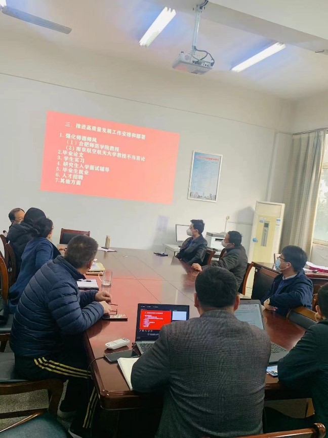 第二阶段:文法学院院长吴明忠同志围绕文件提出的总体要求、主要目标、基本原则以及政治方向等方面要求,对法学系的高质量发展推进做了进一步强调,要求各位教师尤其是新引入的各位博士要针对法学专业的发展方向和目标定位,明确自己的努力方向,自加压力,争取实现2023年法学专业高质量发展的新突破。