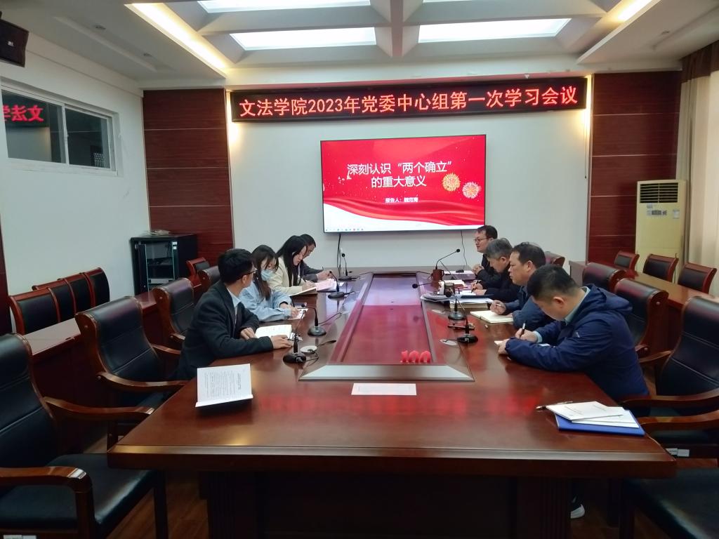 3月29日下午,文法学院党委理论学习中心组在文渊楼216召开专题学习会,进一步深刻领悟“两个确立”的决定性意义,做到“两个维护”,深入学习贯彻党的二十大精神和全国两会精神。会议由党委书记魏范青主持,党委理论学习中心组全体成员参加。