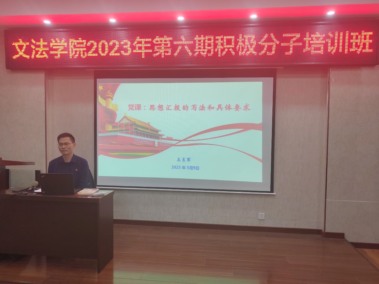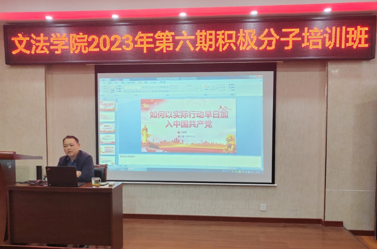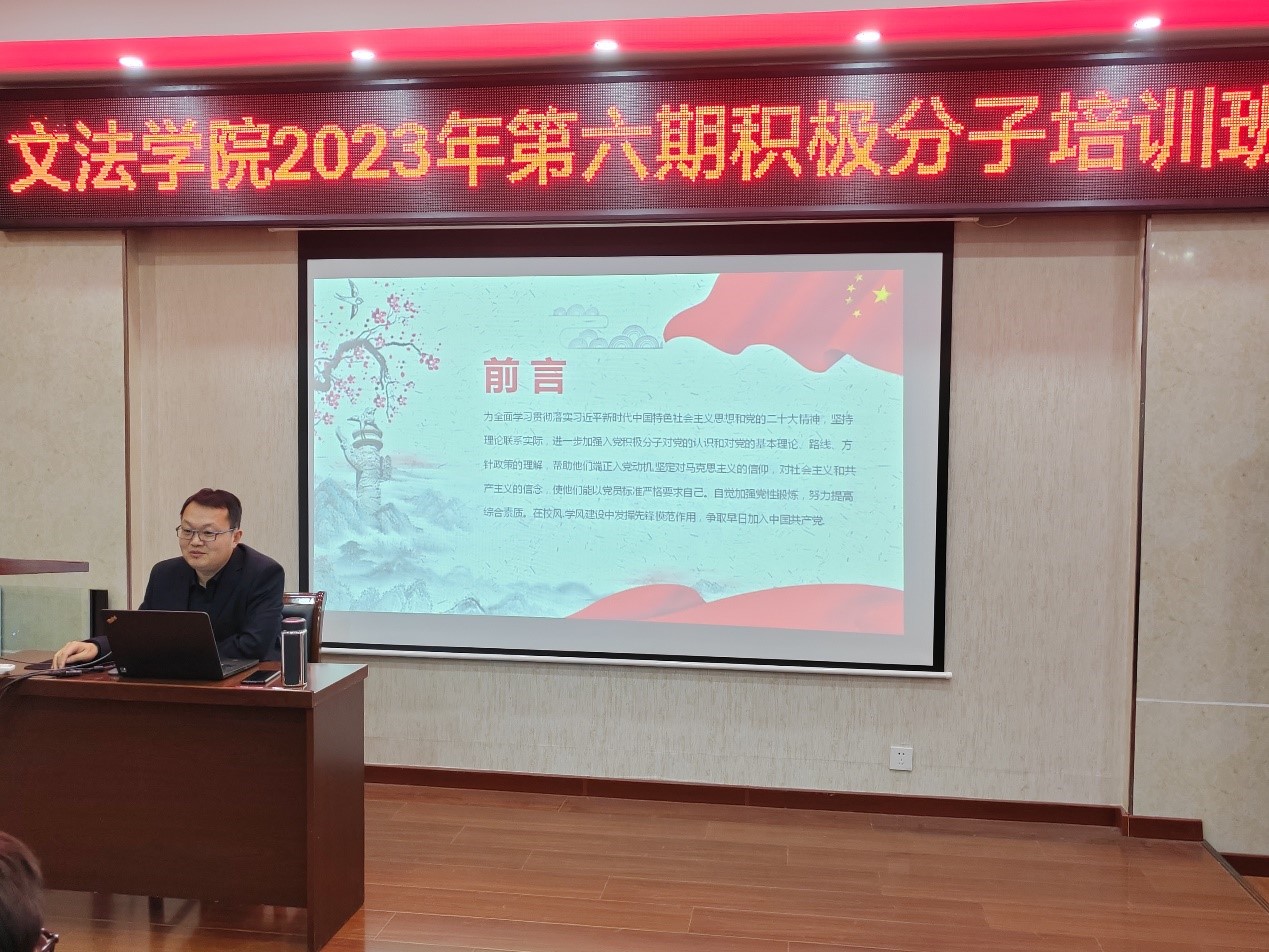 5月8日至5月18日,文法学院第六期入党积极分子培训班在文渊楼314成功举办。党课培训围绕学习贯彻习近平新时代中国特色社会主义思想主题教育,引导学员们端正入党动机,提高自身政治素质和思想觉悟。切实做好我院党员发展工作。