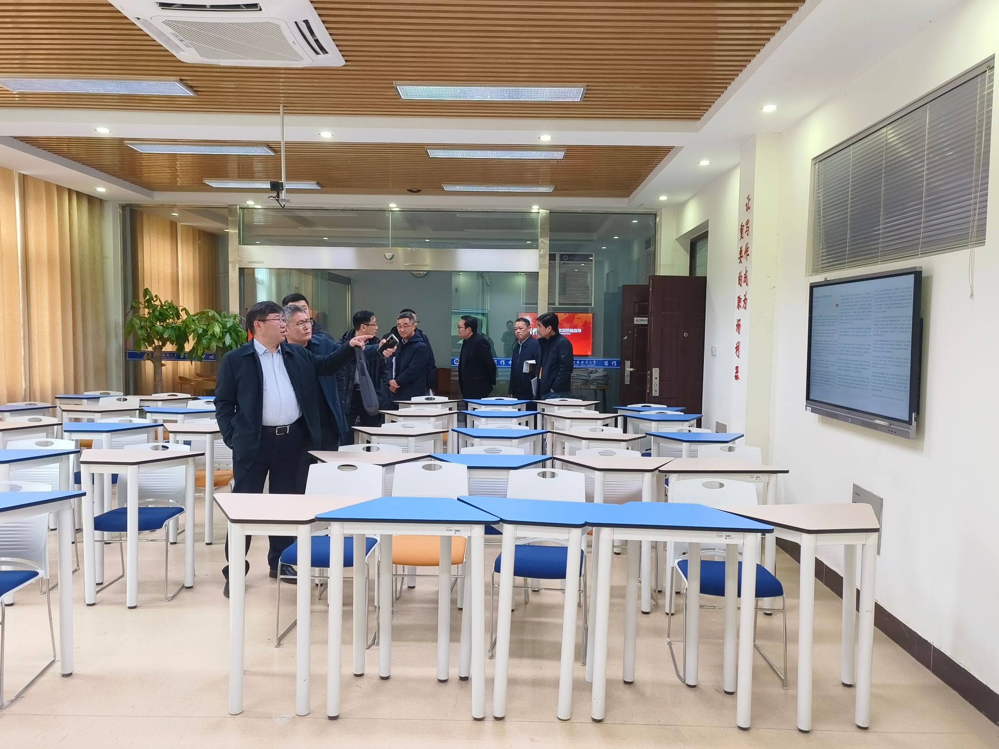 专家组听取汇报后肯定了学院前期的工作成绩,对存在的问题进行了质询,并且提出了具体指导意见。随后,检查组一行考察了学院实验室使用和成果展示情况,并对实验室的成果展示方案给出了具体要求和建议。