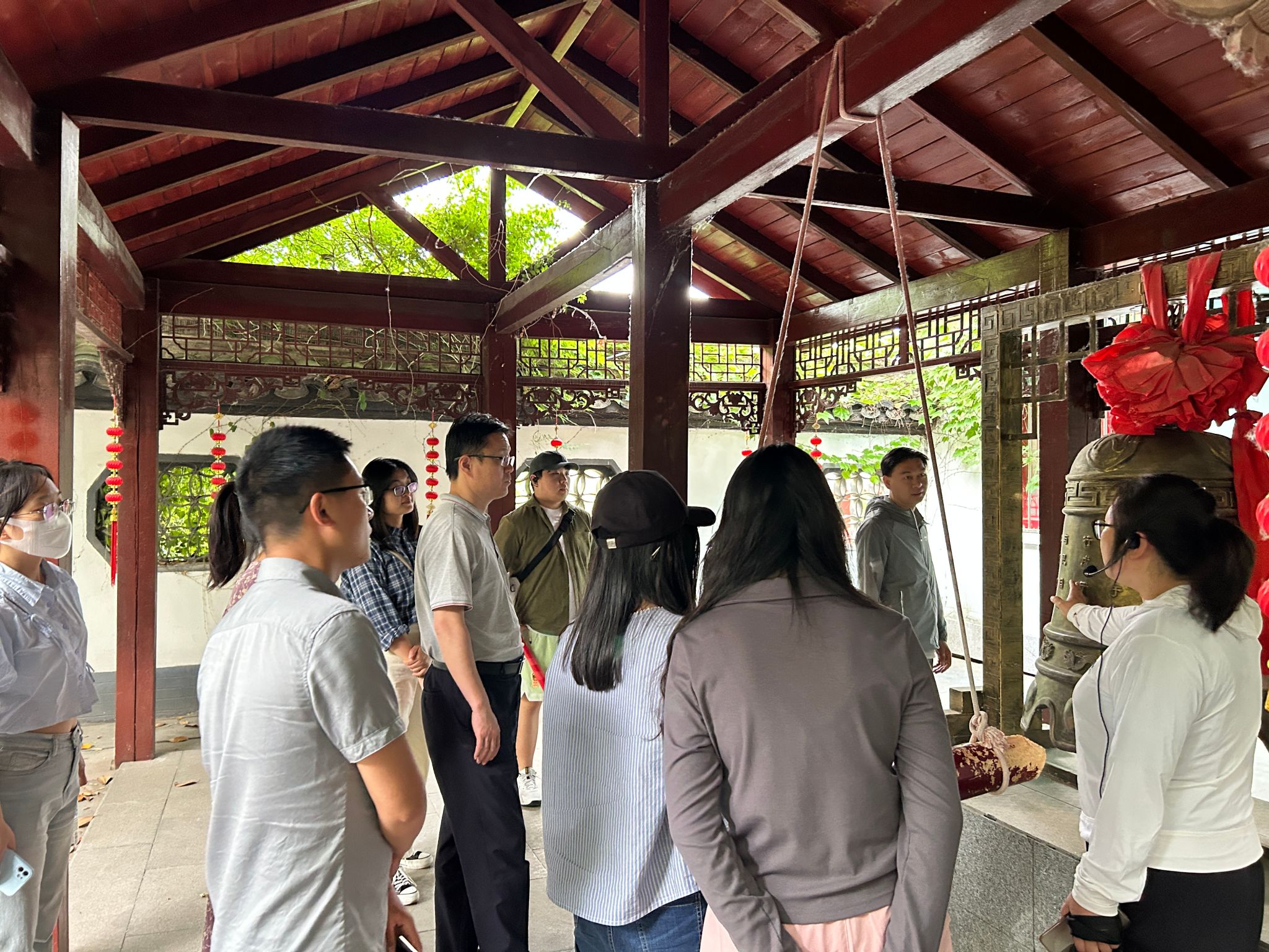 朐风园内还设有一处警钟。警钟背面刻着《周礼》“六廉”:廉善、廉能、廉敬、廉正、廉法、廉辨,周朝“六廉”理念成为中国古代官员政德的基本标准。警钟正面刻着苏轼的“功废于贪行成于廉”、欧阳修的“与民同乐本职初心”,展现了两位古代贤官的从政理念。最后讲解员详细介绍了“戒贪缸”的由来。