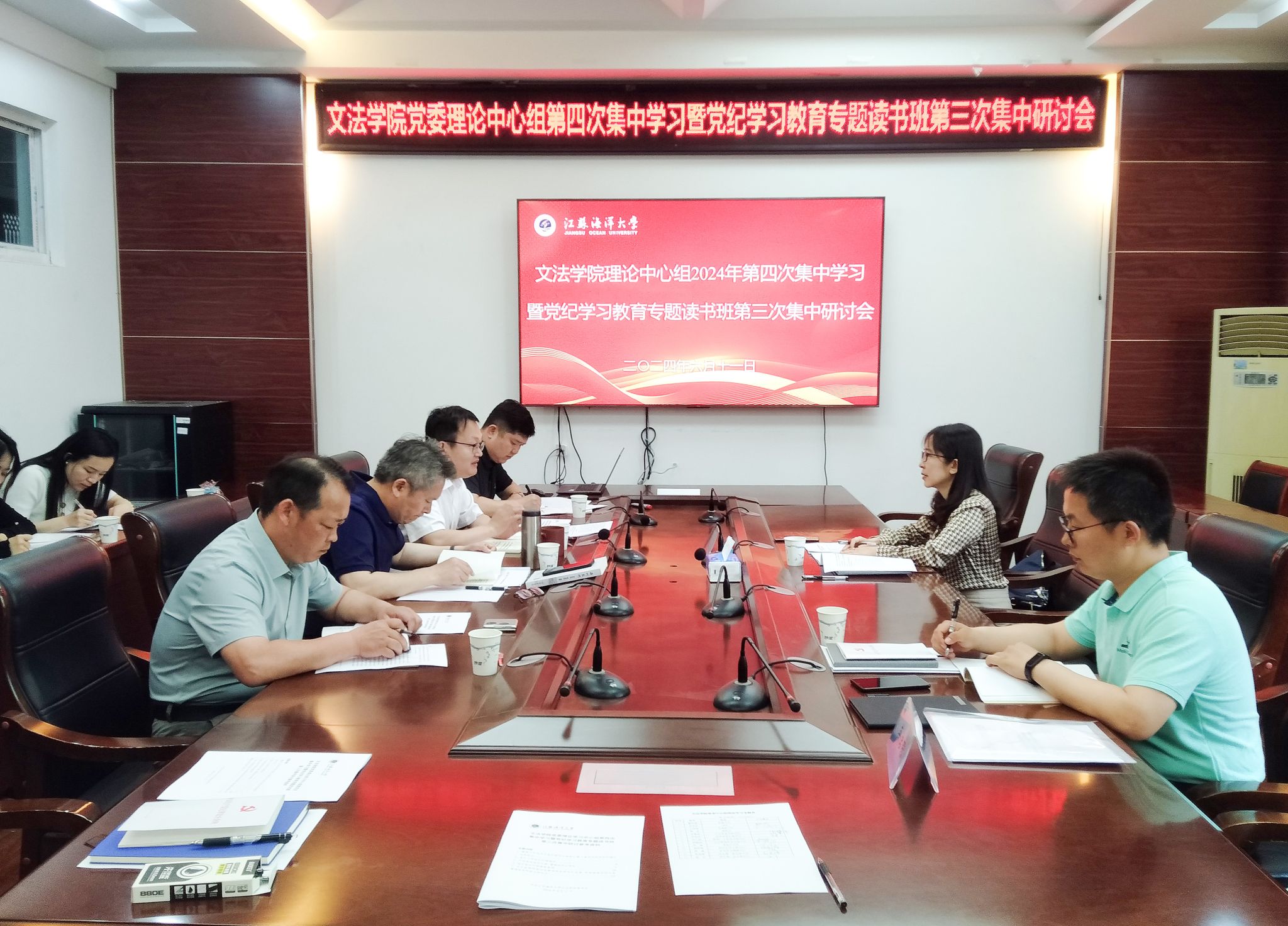 6月11日,文法学院党委召开理论学习中心组第四次集中学习暨党纪学习教育专题读书班第三次集中研讨会。校巡学旁听第四工作组组长、校党委常委、副校长金芙蓉,宣传部英启琛到会巡学旁听。院党委书记魏范青主持会议。