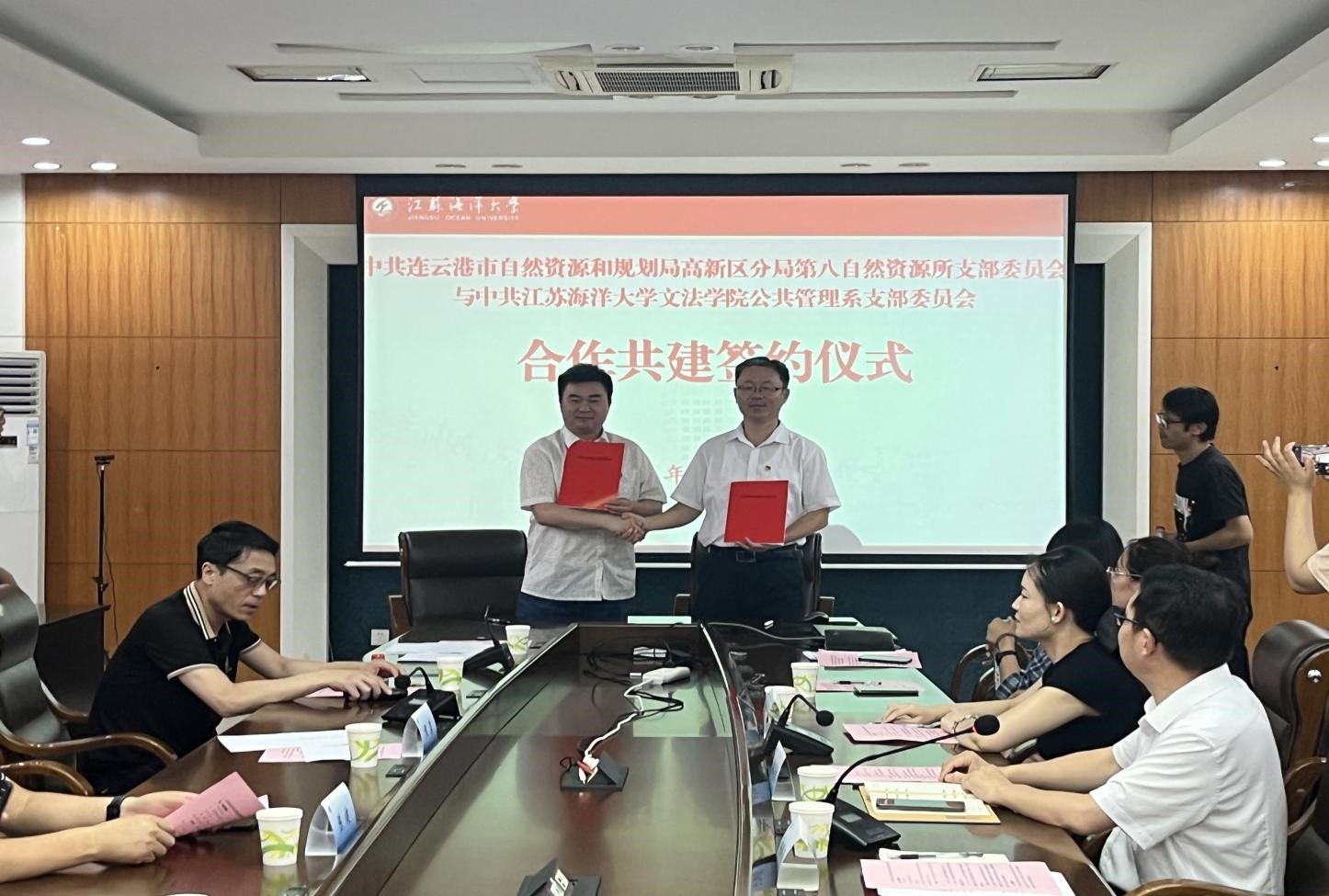 为实现资源共享与优势互补,提高党建工作水平,推动理论与实践紧密结合,2024年6月25日,文法学院公共管理系党支部与市自然资源和规划局高新区分局第八自然资源所党支部于江苏海洋大学文渊楼会议室举行共建合作签约仪式,并联合研究生党支部和学生第一党支部,一同开展主题党日活动。文法学院党委书记魏范青出席会议。